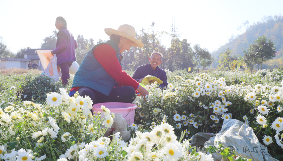 11月14日,记者走进黄土岗镇菊花产业带,只见漫山遍野的福白菊、金丝皇菊压弯枝头,馥郁花香弥漫乡野。趁着天气晴好,菊农穿梭田间,指尖翻飞,将一朵朵饱满的花朵采收入篮。