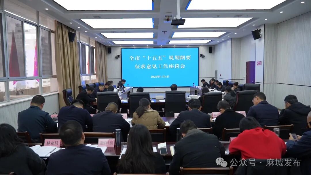 1月4日,市委副书记、市长裴永波主持召开“十五五”规划纲要征求意见工作座谈会,深入学习贯彻党的二十届四中全会精神,认真落实党中央决策部署和省市工作要求,就全市“十五五”规划纲要编制工作听取意见建议,集思广益、群策群力,共同谋划麻城“十五五”发展蓝图。