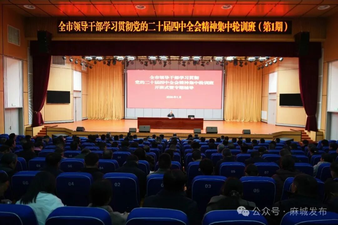 1月11日,全市领导干部学习贯彻党的二十届四中全会精神集中轮训班在市委党校开班。市委书记汪国兵作开班动员暨辅导报告。他强调,要深入学习贯彻党的二十届四中全会精神,全面落实省委和黄冈市委、麻城市委全会部署,加力奋进,聚力突破,加快把“十五五”发展蓝图变成生动实践,努力为推动大别山区域性中心城市建设取得决定性进展贡献更大力量。