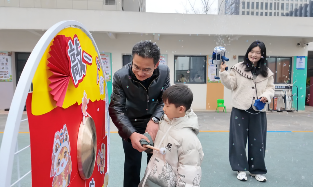 孩子们兴致勃勃地轮流拿起鼓槌,用力敲响锣鼓,铿锵有力的鼓点此起彼伏,不仅敲出新学期的喜悦与活力,更传递着全体师幼同心同行、蓬勃向上的精神风貌。家长们纷纷举起手机,记录下这一个个生动而珍贵的瞬间。