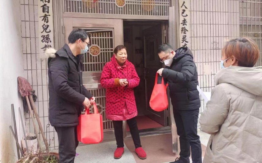 12月27日,黄狮岗社区大党委第一书记徐斌带领市农业农村局党员干部深入共建社区开展暖心服务工作,挨家挨户将“健康爱心包”送到社区70户独居老人、低保户、困难户、失独家庭等有需要的特殊群体手中。