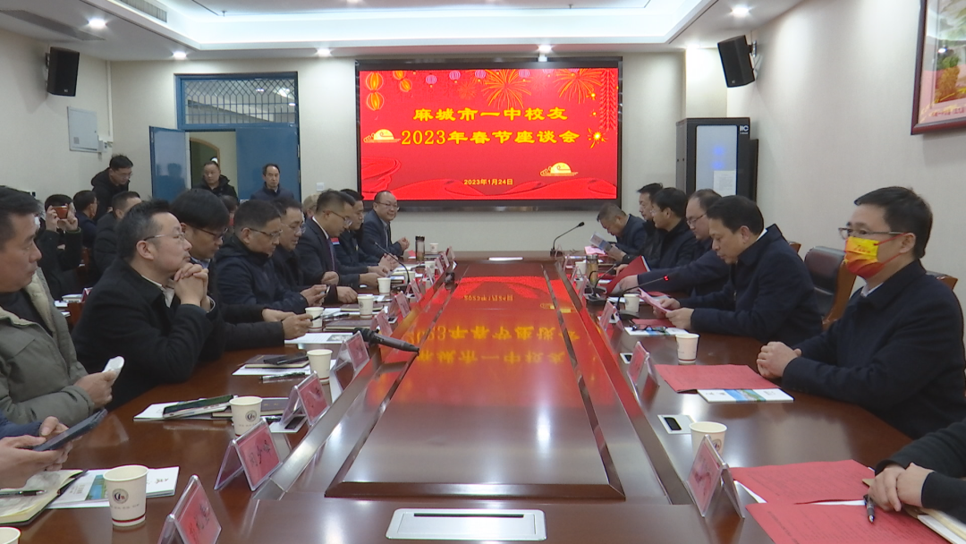 1月24日,麻城市一中校友2023年春节团拜会在麻城市一中举行。市委副书记、市长裴永波,市委常委、宣传部长罗俊,市人大常委会副主任黄国元与校友代表欢聚一堂,同贺新春、畅叙情谊、共话发展。