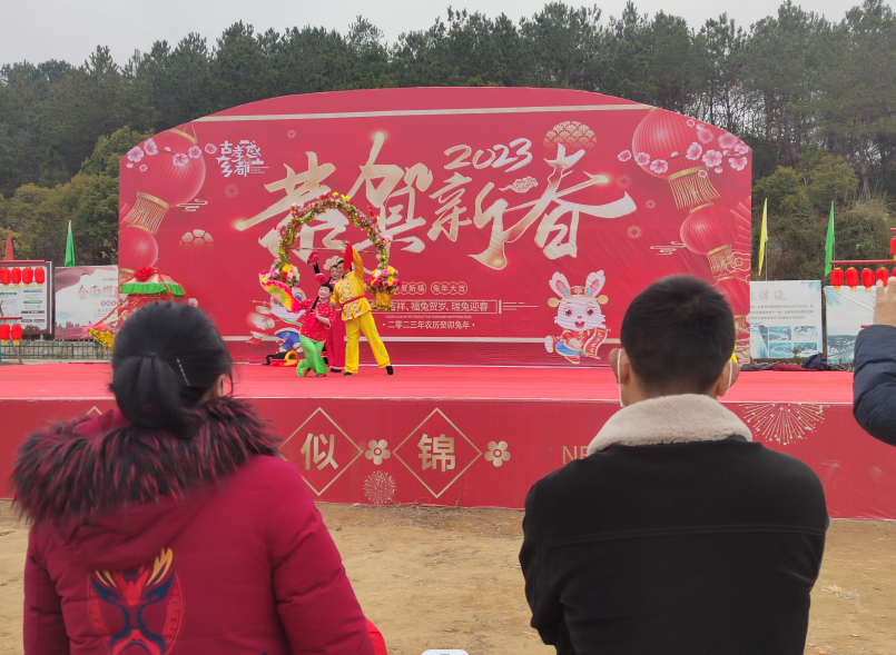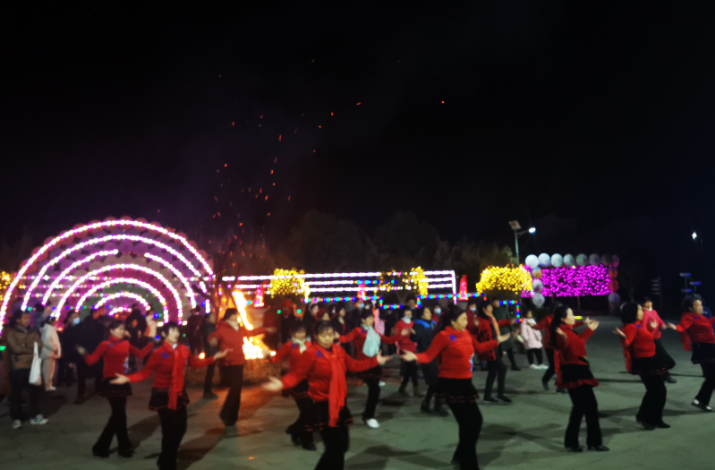 黄土岗镇菊香人家游人如织,载歌载舞,欢度春节。