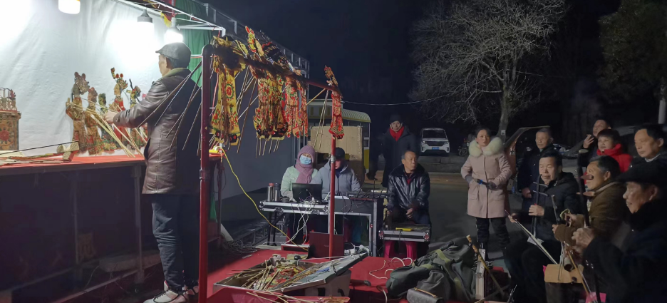 省级非物质文化遗产麻城皮影戏2023春节展演在陵园广场精彩上演。