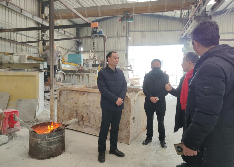 1月26日,龟山镇主要负责人一行到辖区内大东石材、效详石材等企业督办复工复产“开门红”工作。