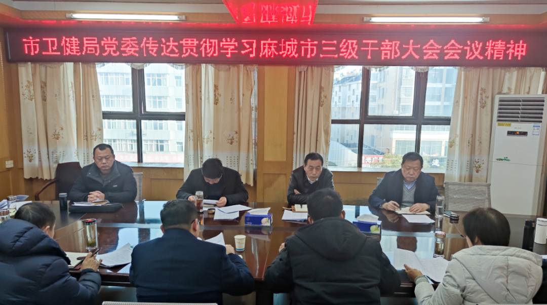 1月28日,市卫健局党委召开会议,学习传达贯彻全市三级干部大会精神,并结合市委工作部署和系统各项目标任务研究贯彻落实措施。