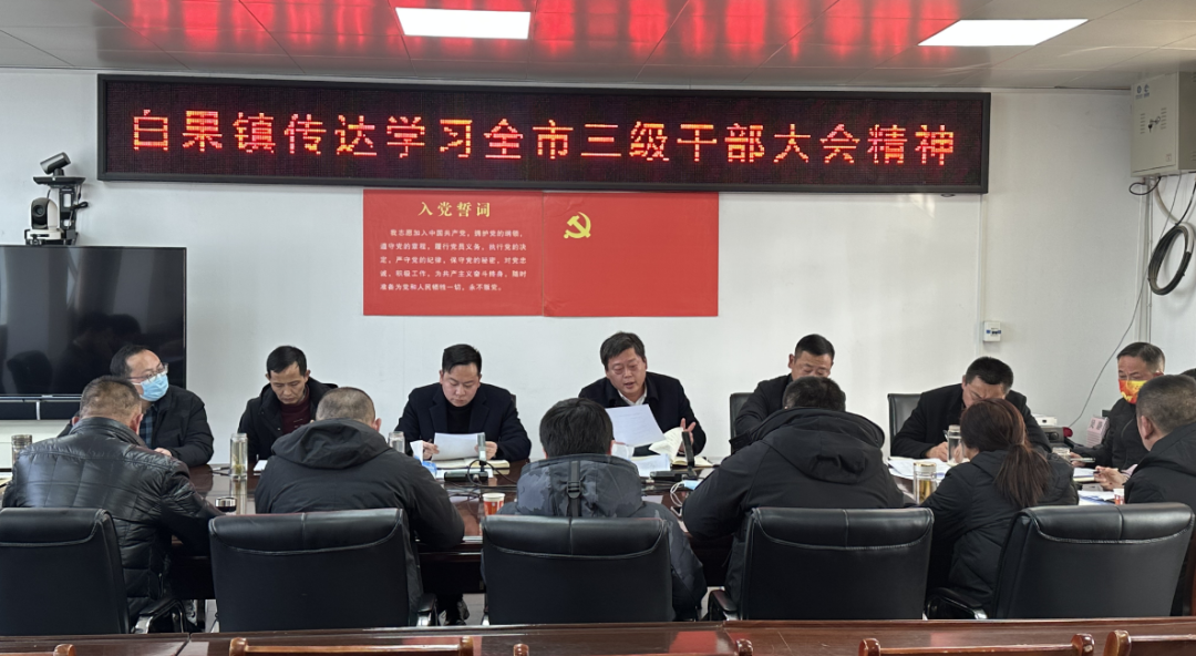 1月28日,白果镇召开党委(扩大)会议,传达学习贯彻全市三级干部大会精神,并就贯彻落实会议精神作出工作部署。