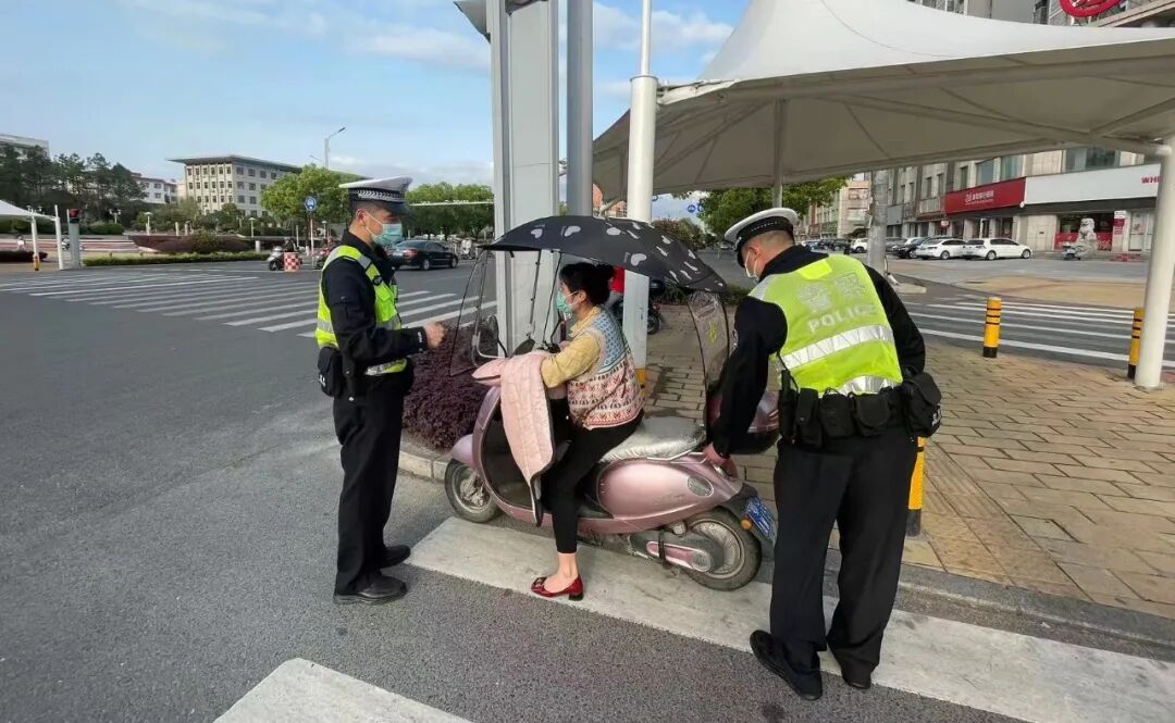 5月11日,记者在工业路、杜鹃大道、将军路转盘、建设路等多个路口看到,执勤的民辅警耐心细致地指挥交通,有序指挥引导人流、车流,保障交通顺畅,同时针对电动车、摩托车驾驶人非法安装遮阳篷(伞)、未佩戴安全头盔、乱停乱放等交通乱象进行集中整治,劝导市民文明规范交通行为。
