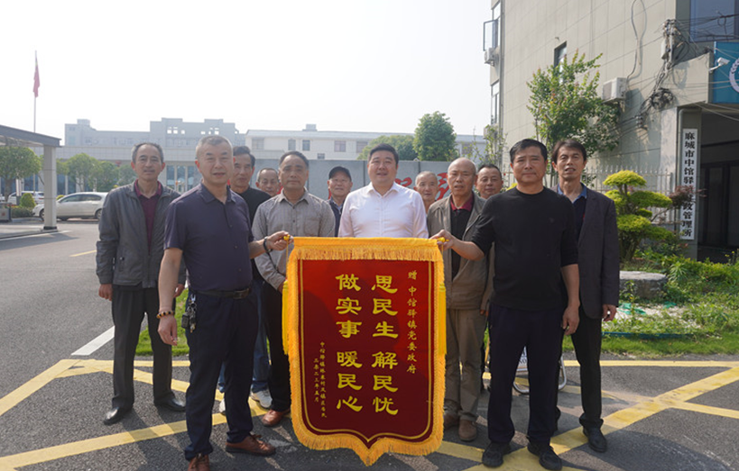 5月12日,中馆驿镇林寨村居民代表专程将印有“做实事 暖民心 思民生 解民忧”的锦旗送到镇政府,对中馆驿镇党委政府在乡村振兴建设中为民办实事、解难题表达诚挚的感谢。