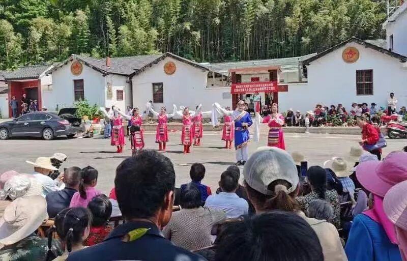 5月14日,麻城市融辉艺术团走进乘马岗镇革命老区王树声故居开展慰问演出活动。演出三句半《永远跟党走》、歌伴舞《再见了大别山》、大型扇子舞《祖国吉祥》等13个节目受到村民的热烈欢迎,大型革命历史情景剧《红军颂》将文艺演出推向高潮。演员精神抖擞,舞姿优美,满满正能量。融辉艺术团还为王树声故居赠送书法一幅。(刘宏文)