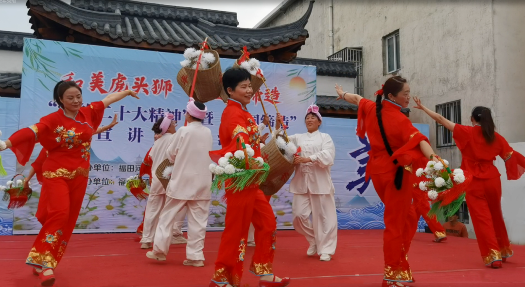 演出在热闹喜庆的《威风锣鼓》中拉开了序幕。歌舞《福田白菊开》、广场舞《山里人乐得好潇洒》《中国范儿》等节目轮番上演。《渔夫戏蚌》《莲湘》《花挑了了喂》等非遗传承节目乡土气息浓厚、深受百姓喜爱,赢得现场观众的阵阵掌声。