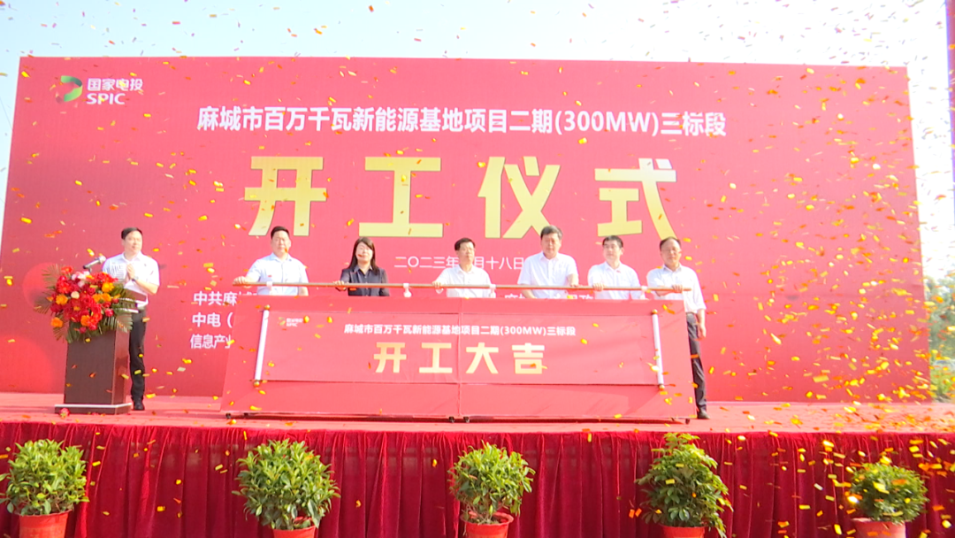 5月18日,麻城市多能互补百万千瓦新能源基地二期(300MW)三标段工程开工仪式在白果镇举行。市政协副主席项双能参加活动并宣布项目正式开工。