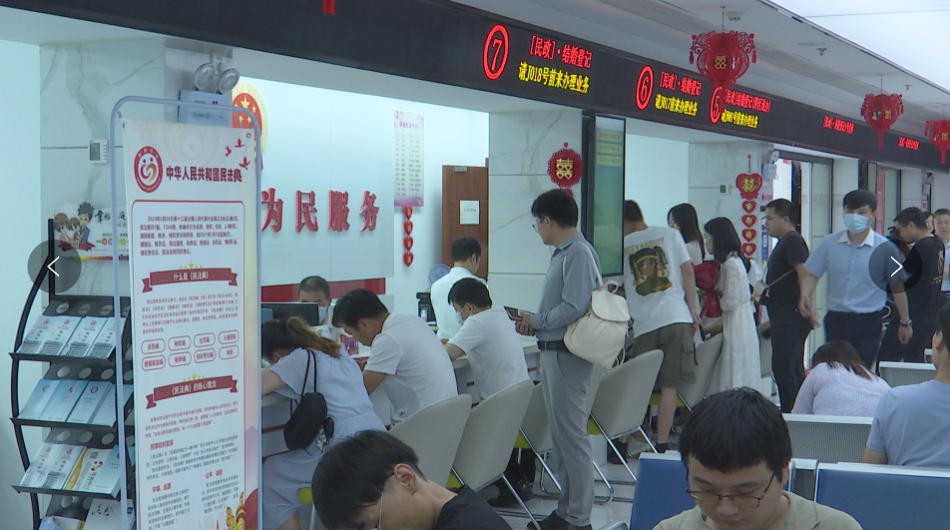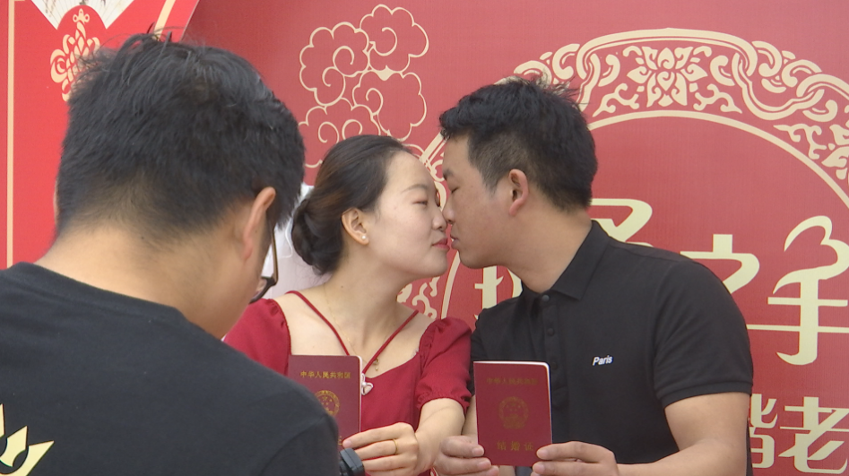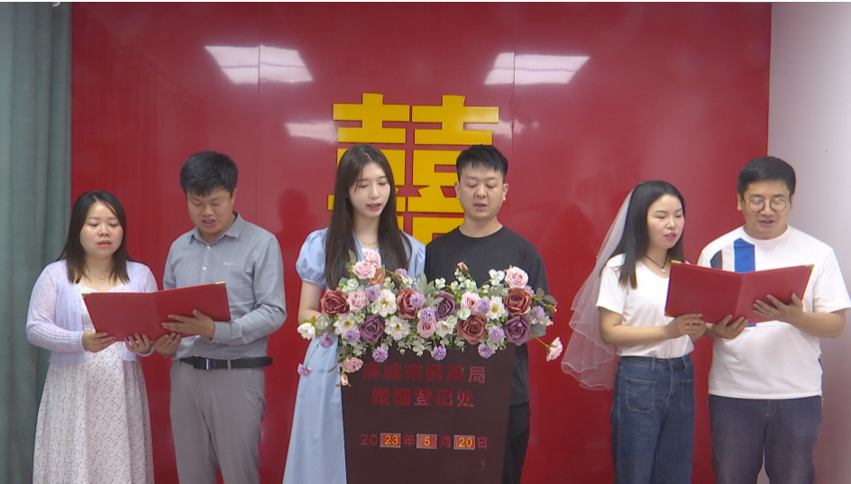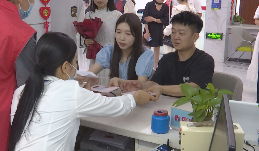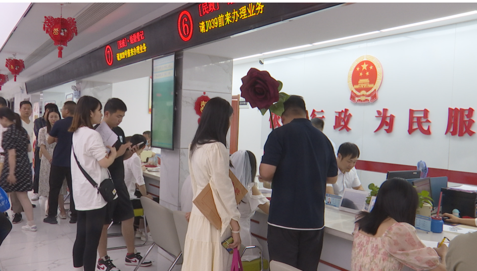 【麻城市民政局婚姻登记处主任 戴典丽】:“每年的520都会提前开通网上预约通道,截至今天网上的预约量是七八十对,我们平常的结婚登记窗口是3个,今年增设了3个,就是有6个窗口,可以同时为6对新人办理业务。”