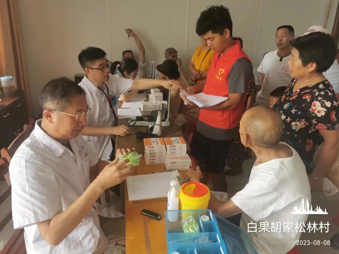 8月8日,市人民医院选派心内科、内分泌科、眼科、急诊科专家,到白果镇胡家松林村开展义诊活动。专家现场讲解中暑特征以及防治方法,为村民测试血压血糖、听诊、分析病因、诊断病情、提供用药指导。