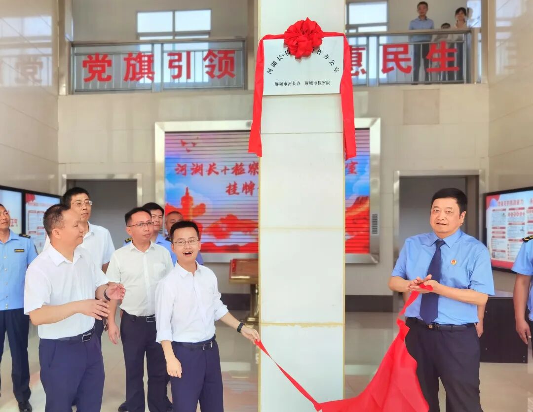 8月10日,“河湖长+检察长协作办公室”在市水利和湖泊局挂牌成立,全市首个“水生态资源保护检察官办公室”在三河口镇水利管理站挂牌,市政府党组成员赵天,市检察院检察长肖志飞参加活动。