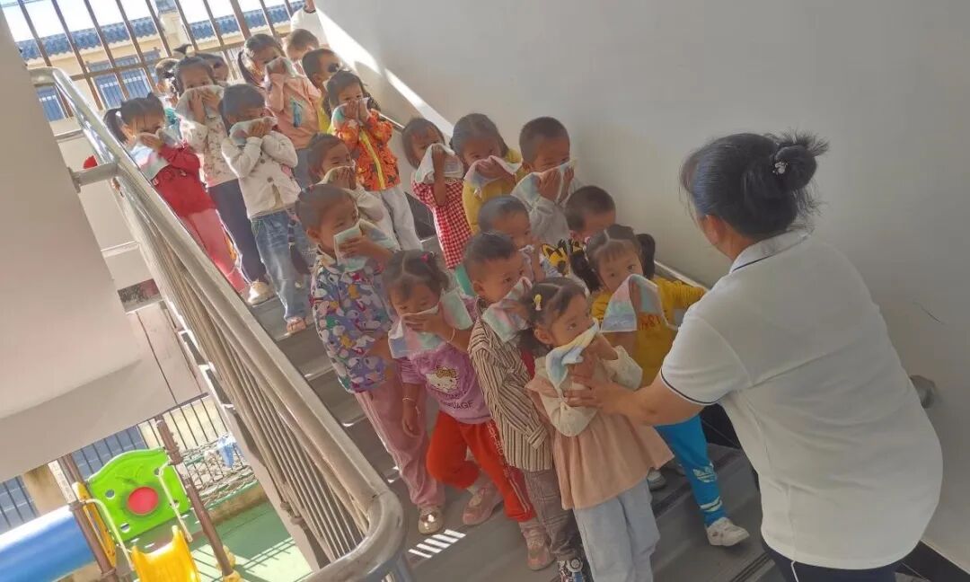 上午9:00,园内消防警报响起,各班教师迅速反应,按照应急演练方案,以班级为单位,分方向、按路线向安全出口疏散。通过演练,进一步提高了师幼的消防安全意识,让安全伴随每一位幼儿健康成长。(颜莹莹)