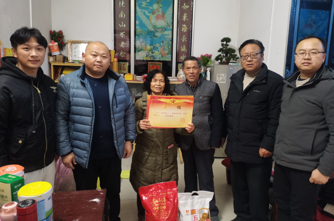 2024年新春伊始,宋埠镇退役军人服务站陆续收到全国各地部队寄送来的立功受奖喜报。连日来,宋埠镇武装部、宋埠镇退役军人服务站的工作人员,协同村干部来到李胜村、项生村、龙井村,给在部队立功受奖的现役军人家属送去了立功喜报,并送上慰问物资。