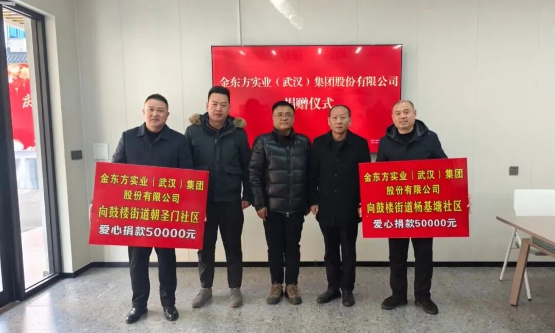 1月10日,金东方实业(武汉)集团股份有限公司向鼓楼街道朝圣门社区和杨基塘社区各捐赠5万元,推动社区治理工作再上新台阶。