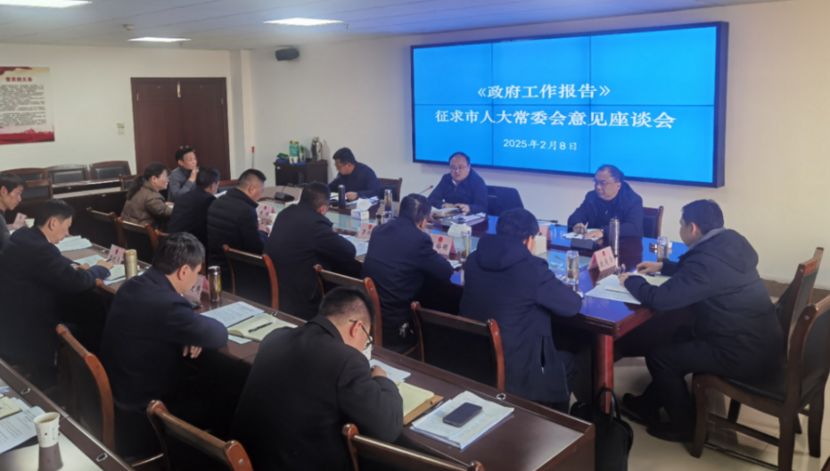 2月8日,《政府工作报告》征求市人大意见座谈会召开。市委副书记、市长裴永波,市人大常委会党组书记、主任段虎出席会议。与会人员纷纷发言,对2024年全市发展质效和市政府工作给予高度评价,对2025年发展目标和工作安排表示完全赞同,并就推动重大项目、产业发展、文旅融合、交通物流等重点工作,更好助力全市经济高质量发展提出具体建议。