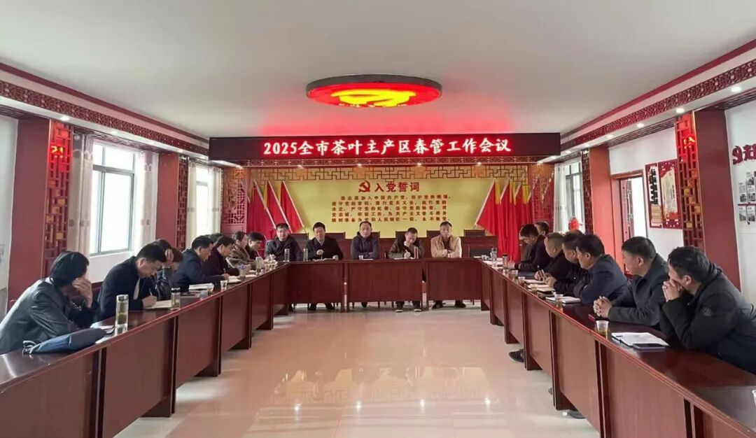 3月12日,全市茶叶主产区春管工作会议在龟山镇熊家铺村召开。