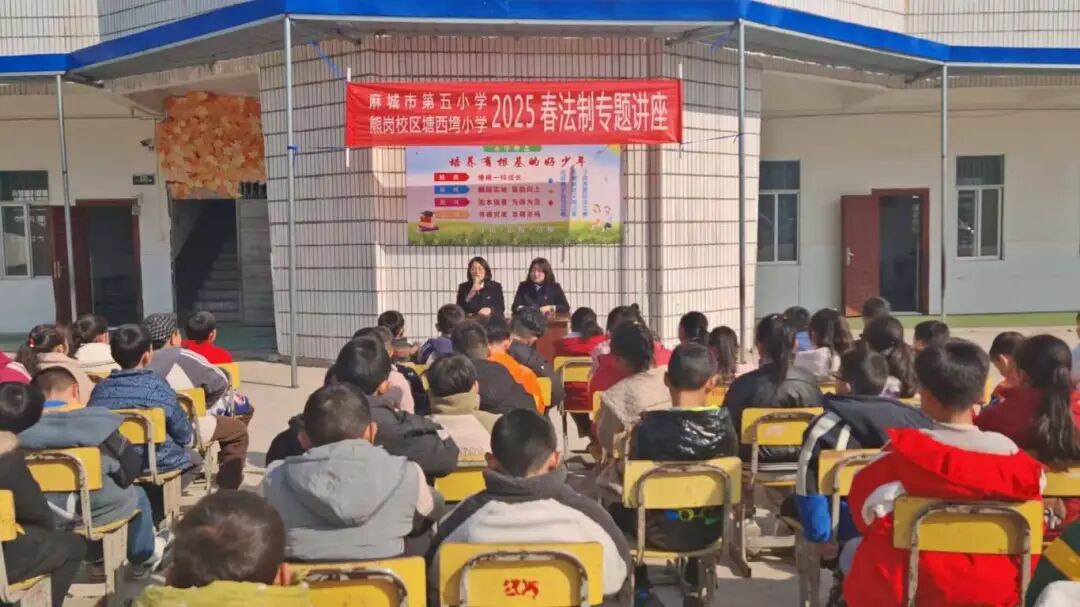 近日,麻城市人民法院黄金桥法庭法官来到熊岗校区塘西塆小学,开展以“认识法律,守护成长”为主题的送法进校园活动,为学校百余名师生送去一堂生动的法治教育课。