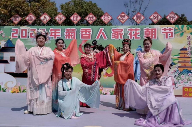 “三月春风吹皱一池碧水,十二花神衣袂翩跹掠过青石板路……”3月23日,菊香人家门口大戏台前,非遗吉康艺术团正为“花神”簪上最后一朵芍药。这场花朝盛事将在未来37天里以“古礼新韵 百花传情”的新实践,演绎一场文旅融合的“破圈”实验。