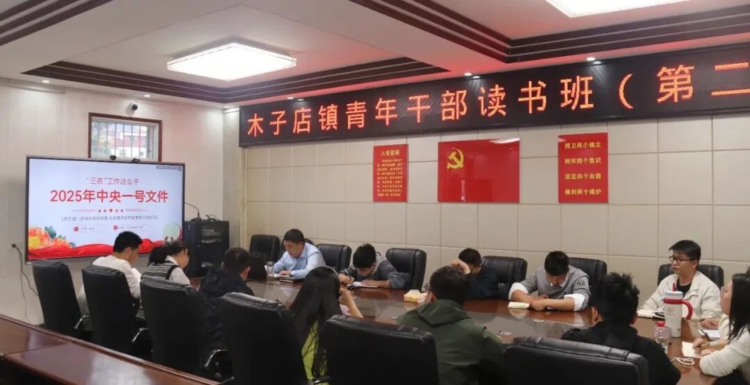 4月15日,木子店镇举办青年干部读书班第二期学习会,集中学习2025年中央一号文件。