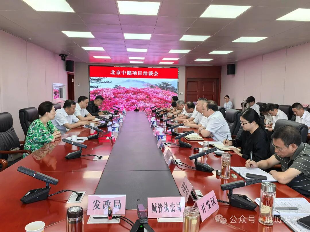 8月27日,北京中健数字产业有限公司董事长杨保志、执行总裁柯晓东、副总经理薛娟、湖北区域总经理闻墨一行到麻城开展项目洽谈。市委书记汪国兵,市委副书记、市长裴永波出席项目洽谈会。