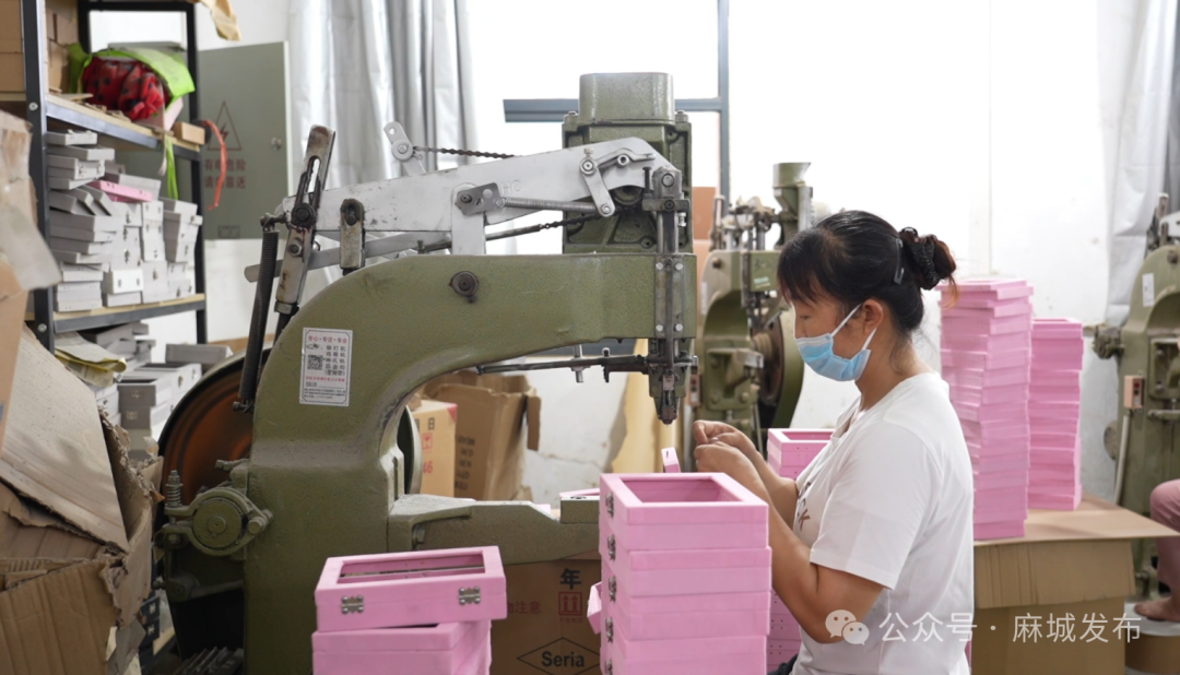 麻城市新创科技有限公司生产车间负责人曾细能告诉记者,在阎家河镇蔡家岗村老村部改造的生产车间里,40多名员工在有条不紊地加工畅销的首饰盒箱包。