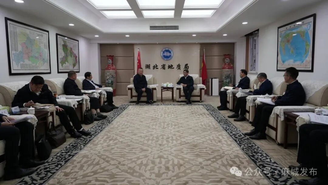 在省地质局,汪国兵拜会了省地质局党委书记、局长林常伦,党委委员、总工程师杨明银,党委委员、副局长胡清乐。汪国兵对省地质局长期关心支持麻城发展表示感谢。他说,要抢抓新机遇。省地质局是全省地质工作的主力军,在人才、技术等方面具有多重优势。麻城地处武当-桐柏-大别国家级重要成矿带东部,成矿地质条件好,矿产开发潜力大。希望双方抢抓国家实施新一轮找矿突破战略行动机遇,在“十五五”规划研究、地质调查、科技创新等领域深化务实合作。要拓展新赛道。实施找矿突破行动,加大麻城石英石、萤石、金、钼、地热等矿产资源勘查力度,探索勘探、开采、选矿、加工一体化发展路径。实施技术攻关行动,开展石英石、萤石等矿石加工选冶技术性能研究和选矿技术攻关,加强石材新材料研发转化,拓展电子信息、新能源、建筑新材料等新赛道。实施产业振兴行动,聚焦菊花、蔬菜、老米酒等特色农产品,针对性开展农业地质调查,为“富硒”“富钼”等高附加值农产品开发提供科学依据。实施综合开发行动,发挥省地质局技术优势,赋能麻城绿色矿山创建,推动矿产资源开发向循环化、集约化、生态化方向转型发展。要共绘新蓝图。当前正处在国家和省、市编制“十五五”规划以及各类专项规划的重要窗口期,希望省地质局以专业视野指导麻城高质量编制“十五五”规划,争取将更多体现麻城特色的项目纳入国家和省规划“盘子”,助力麻城打造全省矿产资源和能源基地,加快把矿产资源优势转化为产业发展胜势。