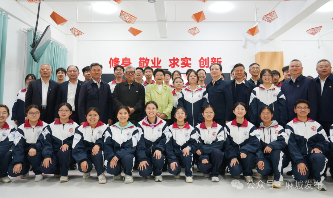 顾秀莲先后来到麻城市第一中学、麻城市烈士陵园青少年关爱教育基地,实地察看麻城一中春晖馆、特色思政课堂、重走“长征路”现场教学点,烈士陵园“老兵宣讲”现场教学点、鄂豫皖红军发展史陈列馆、中共麻城第一届县委群雕现场教学点等工作现场,详细了解“五老”参与大思政课实践、“中华魂”主题读书活动、关工委阵地建设等工作情况。每到一处,顾秀莲都与学生、小小讲解员们亲切交谈,询问他们的学习生活情况,仔细聆听小小讲解员讲述革命先烈的英勇事迹,并不时点头称赞。她勉励孩子们要铭记历史,传承红色基因,争做有理想、敢担当、能吃苦、肯奋斗的新时代好少年。