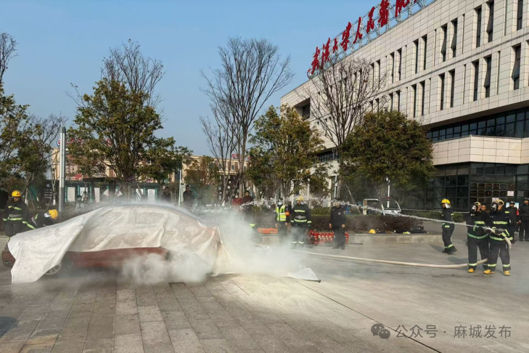 12月17日,麻城市医院安全专委会2025年医院突发事件、消防应急演练在市人民医院门诊楼广场举行。