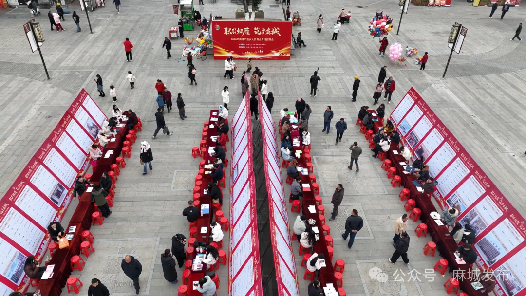 1月3日,市人社局主办的“职引归雁 筑梦麻城”2026年首场返乡人员专场招聘会在文化小镇举行。