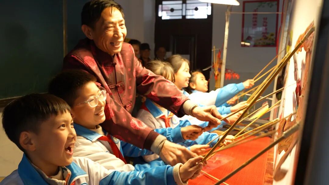 近日,在市第四小学盐田河校区内,省级非遗麻城皮影戏传承人夏传能带来学生们喜欢的经典剧目《三打白骨精》,活灵活现的皮影人物伴随着婉转唱腔与器乐伴奏,在幕布上翻转腾挪,学生们围坐观看,沉浸式感受传统民间艺术的独特魅力。
