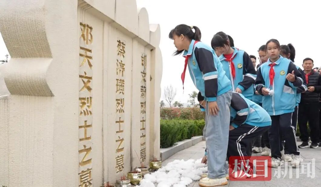 活动现场庄严肃穆,全体人员肃立,奏唱国歌和少先队队歌。全体人员瞻仰烈士纪念碑,礼兵敬献花篮、整理挽联,全体人员三鞠躬、默哀,少先队员敬献自制小白花,表达深切缅怀。师生齐声唱响由蔡济璜烈士绝笔诗谱曲而成的《雄心誓不降》和《国际歌》,雄浑的旋律在烈士塔前久久回荡,激荡着每一个人的心灵。黄冈市红色文化研究会专家深情讲述三烈士在枪林弹雨中坚守红色信念,在饥寒交迫中捍卫革命理想,在国家危亡时挺起民族脊梁的事迹。