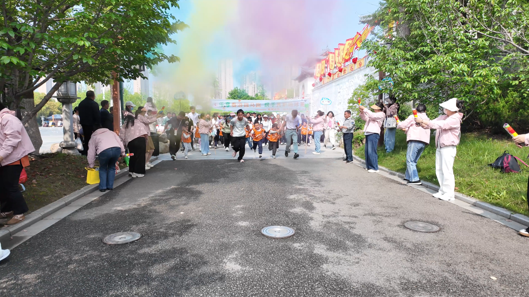 全体幼儿合唱环保儿歌《低碳贝贝》歌声嘹亮,亲子热身操活力四射,大班组幼儿与家长携手奔跑在公园步道上,兴致勃勃参加环保主题微型马拉松比赛,小班和中班则开展环保小游戏、废旧材料手工制作、环保袋绘制等亲子活动。在欢声笑语中,孩子们用童真的语言表达对未来地球的美好憧憬。(孙睿泽)