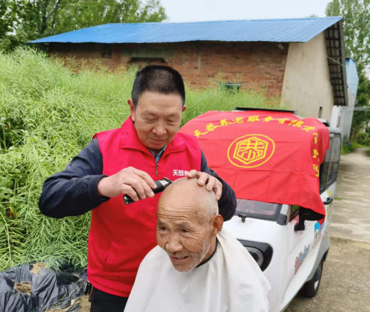 除了送餐,驻村工作队还积极联系爱心理发店,动员理发师每月进村开展一次免费理发服务。对于行动不便的老人,工作队则带着理发师上门服务。一把推子、一块围布,一番细心修剪后,老人们个个精神焕发。截至目前,李钊村已开展免费理发活动6场,服务老年人200余人次。
