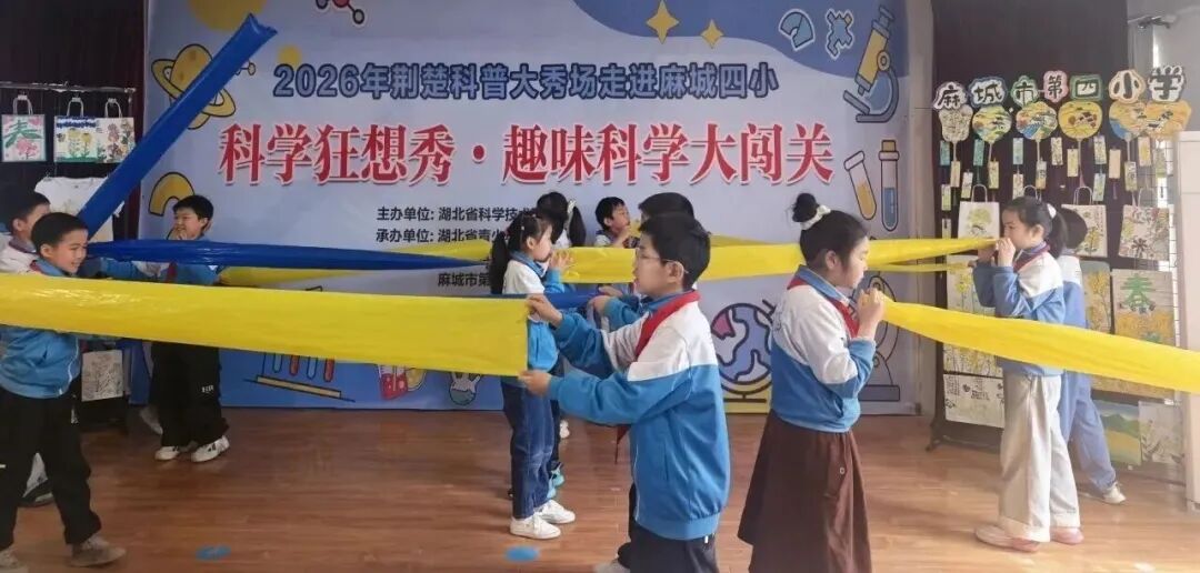 活动伊始,湖北省青少年科技中心向麻城市第四小学捐赠了科学实验资源包,为学校科普教育提供有力支持。随后,“荆楚科普大秀场”团队带来科学狂想秀——趣味科学大闯关精彩表演。云端秘境、火神之舞、会吐火的泡泡、空气冲击波、极速升空、大气之力等趣味实验轮番上演,将科学原理融入直观互动,让孩子们在惊叹与欢笑中感受科学魅力,激发探索热情。(陶幼萍)